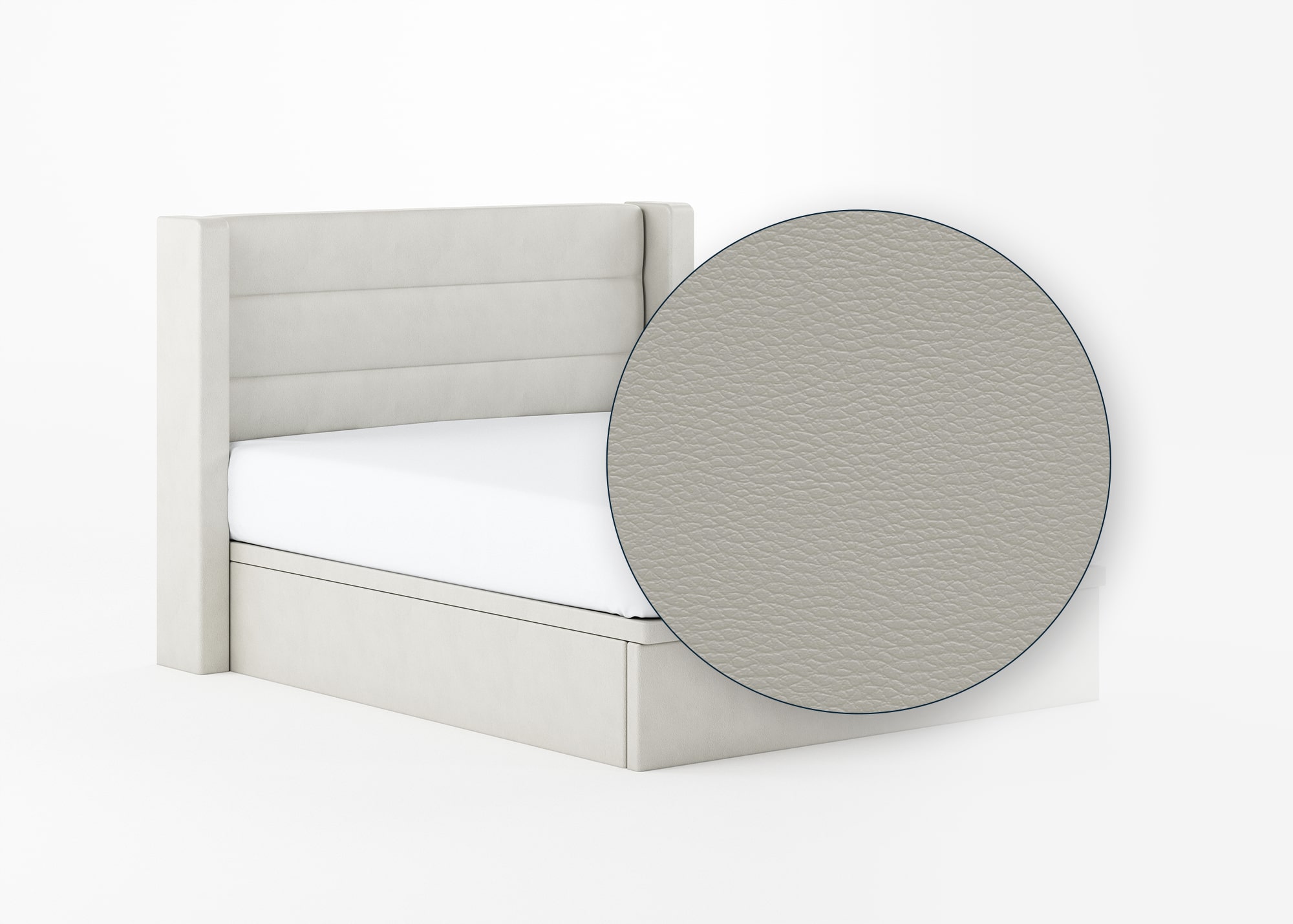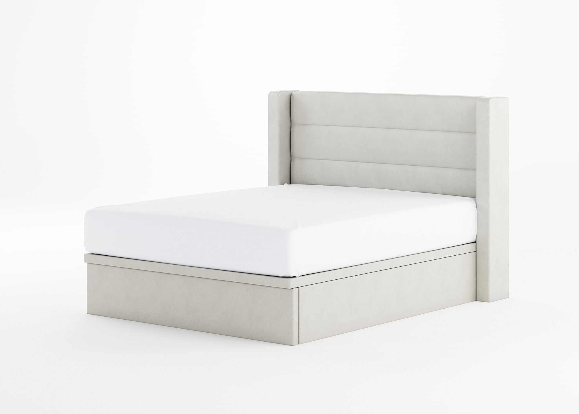A large headboard enveloped by sleek columns in xxxx or snow.